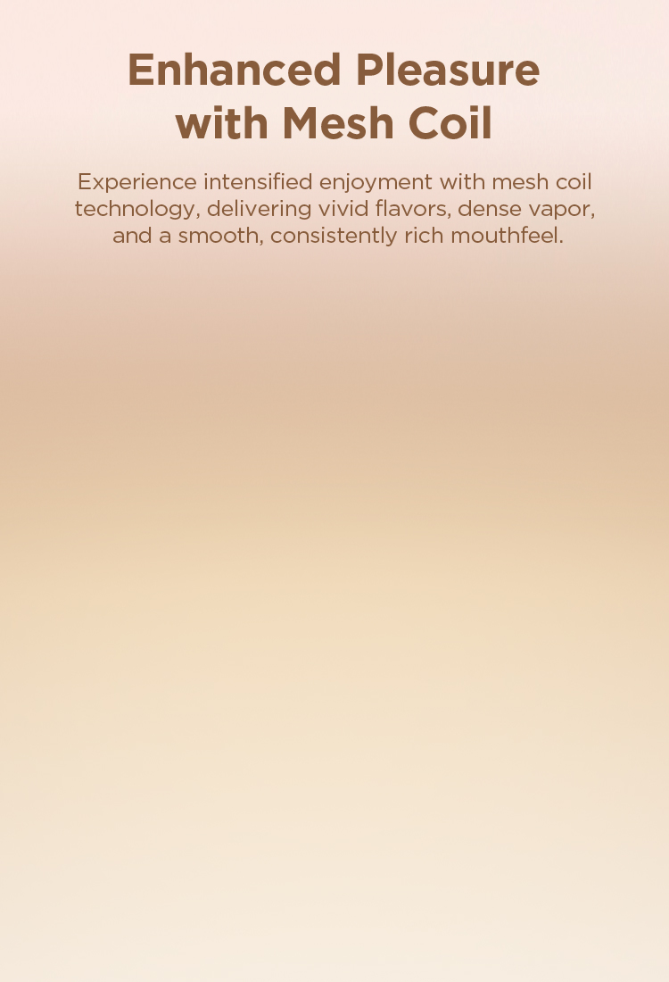 Experience intensified enjoyment with mesh coil technology, delivering vivid flavors,